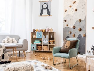 Ένα ή δύο καλάθια για λούτρινα ή κουβερτούλες κρατούν τον χώρο τακτοποιημένο και τα παιχνίδια προσβάσιμα στα μικρά χεράκια.