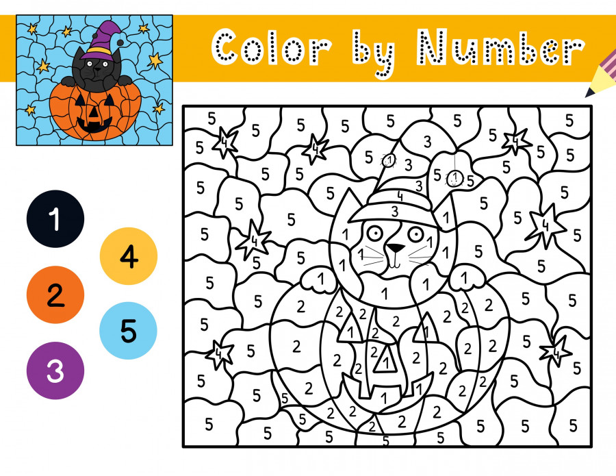 Αν θέλετε το παιδί σας να μάθει να ξεχωρίζει τα χρώματα και τους αριθμούς, μπορείτε να το βοηθήσετε να τα καταφέρει με αυτές τις χρωμοσελίδες. Κάθε χρωμοσελίδα έχει αριθμούς που αντιστοιχούν σε συγκεκριμένο χρώμα. Ζητήστε από το παιδί σας να γεμίσει με το χρώμα που ζητείται τον αριθμό μέσα στη φωτογραφία. Στο τέλος θα αποκαλυφθεί μια όμορφη Halloween φιγούρα.