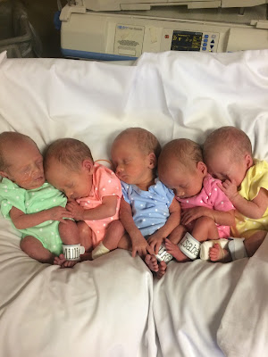 Ευτυχώς τα παιδιά αναπτύσσονταν φυσιολογικά και λίγες μέρες πριν τα Χριστούγεννα, στην 32η εβδομάδα της κύησης, η Άβα Λουίζ, η Κλάρα Κάθριν, η Καμίλ «Μίλι» Γουίτνι, ο Λιούκ Τόμας κι η Ιζαμπέλι Φράνσις είδαν το φως της ζωής με διαφορά ενός λεπτού το ένα απ' το άλλο με καισαρική τομή.