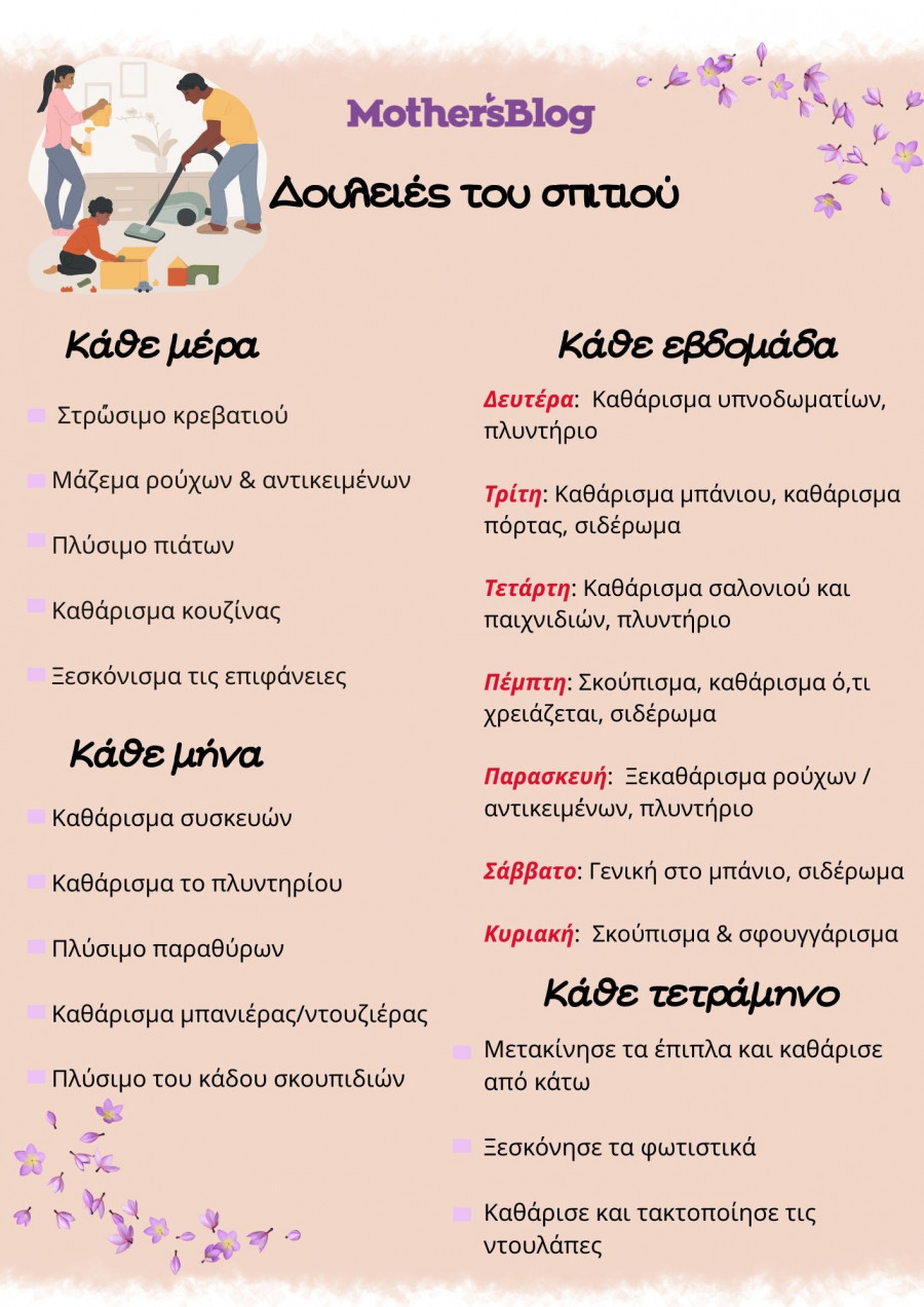 Μάθε πώς να οργανώνεις τις καθημερινές δουλειές του σπιτιού χωρίς άγχος, ενώ απολαμβάνεις χρόνο με το μωρό σου.