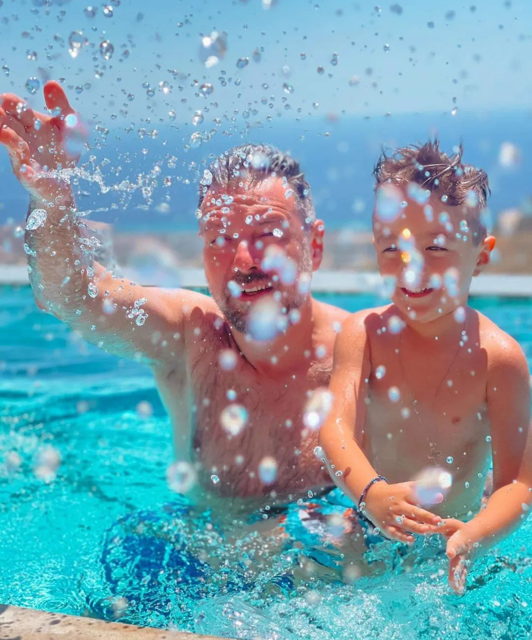 Αλλο ένα στιγμιότυπο από τη θάλασσα με τον γιο του.