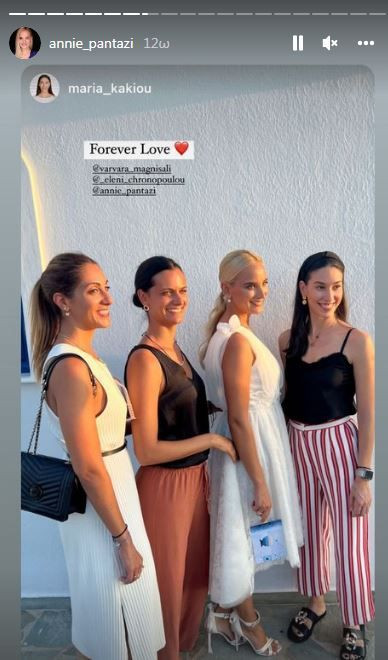 Η Άννη Πανταζή με φίλες της. Η μαμά του νεοφώτιστου επέλεξε για τη βάφτιση ένα κομψό outfit.