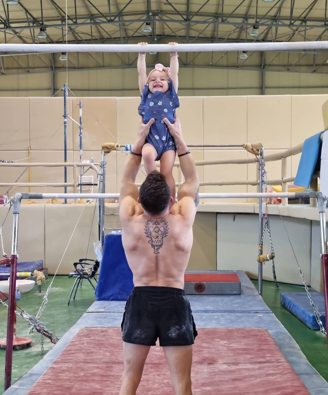 Πέρα από τις παιδικές χαρές, έχει περάσει αρκετές ώρες παρακολουθώντας τον μπαμπά και τη μαμά της να προπονούνται κι εκείνη να κάνει τούμπες στα στρώματα και να προσπαθεί να τους μιμηθεί.