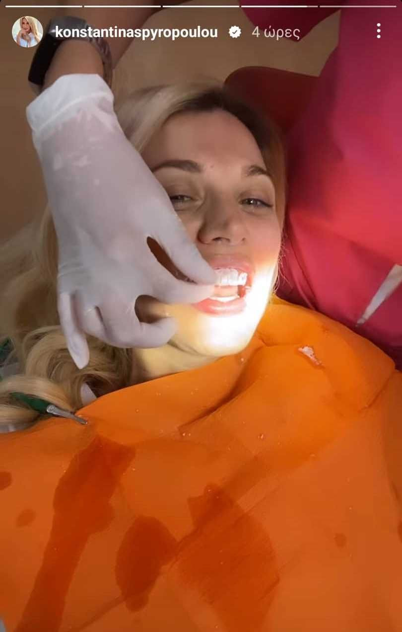 Πριν μερικές ώρες η Κωνσταντίνα δημοσίευσε ένα insta story όπου τη δείχνει να βρίσκεται στην καρέκλα της οδοντιάτρου της και να κάνει καθαρισμό.