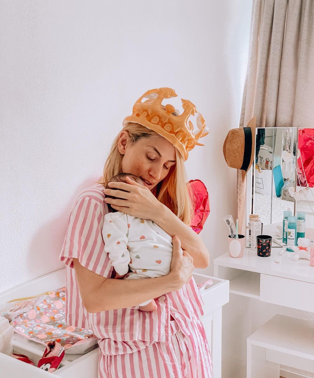 "Η μητρότητα είναι ένα ταξίδι..δεν υπάρχει Οδηγος Του Καλού Γονιου υπάρχει όμως το ένστικτο και αργότερα η εμπειρία που είναι πολύ σπουδαίος δάσκαλος. Αν έχεις γίνει γονιός για πρώτη φορά προσπάθησε να μην ασκείς μεγάλη πίεση στον εαυτό σου…είναι πολλά αυτά που θα ακούσεις, πολλές οι γνώμες και ακόμη περισσότερες οι συμβουλές. Τα προγράμματα των άλλων είναι υπέροχα μπορεί όμως να μην ταιριάζουν σε σένα κ το μωρό σου. Και να θυμάσαι πως αν νιώσεις ένα βάρος να σε λυγίζει γιατί είναι όλα πρωτόγνωρα και δύσκολα στην αρχή…πάρε λίγο χρόνο για τον εαυτό σου…κλάψε φώναξε ζητά βοήθεια κ να είσαι πάντα επιεικής με σένα ..Πες «χρειάζομαι ένα λεπτό» και παρτο! Θυμήσου ότι είσαι άνθρωπος και κανείς ο,τι καλύτερο μπορείς" είχε γράψει κάτω από αυτή τη φωτογραφία.