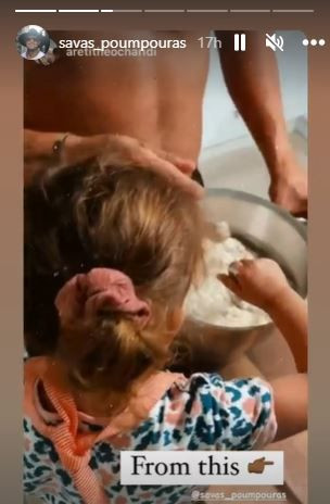 Σε αρκετά από τα insta stories που ανεβάζει όταν μαγειρεύει, έχει δίπλα του την κόρη του Κύνθια. Η μικρή δείχνει πάντα αφοσιωμένη σε αυτό που κάνει και ακολουθεί τις οδηγίες του μπαμπά της.