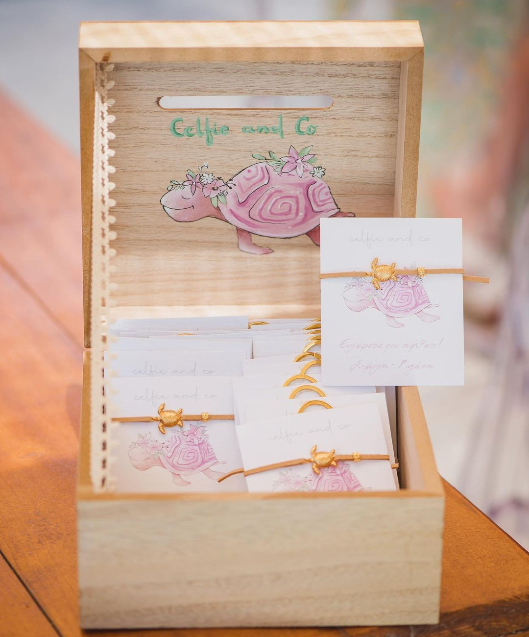 Το θέμα του πάρτι ήταν οι χελωνίτσες. Στους καλεσμένους μάλιστα έδωσαν αυτά τα βραχιολάκια.