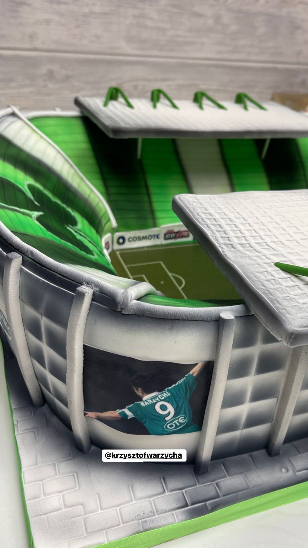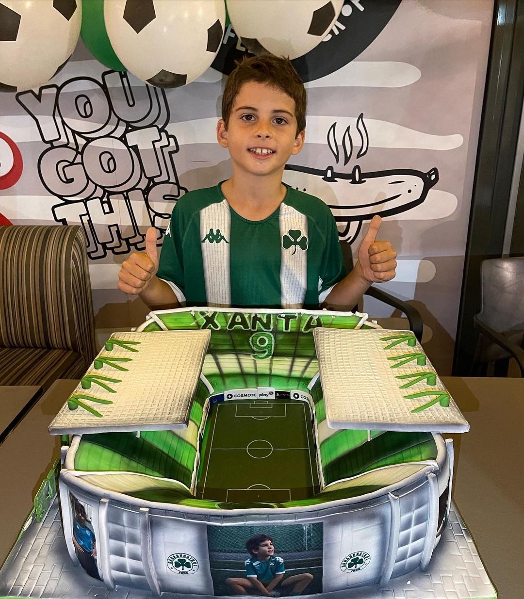 Η τούρτα του λοιπόν ήταν τεράστια και απεικόνιζε το γήπεδο ποδοσφαίρου του Παναθηναϊκού με φωτογραφίες γνωστών παικτών της αγαπημένης του ομάδας.