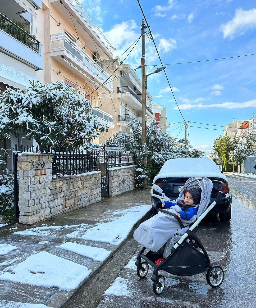 «Τρέχουν τα παιδιά μέσα στο χιονιά..»🎶Και του χρόνου,ευχαριστούμε χιόνι,φύγε τώρα,πήγαινε κι αλλού..θα σας ειδοποιήσουμε», σχολίασε η γλυκιά μαμά.