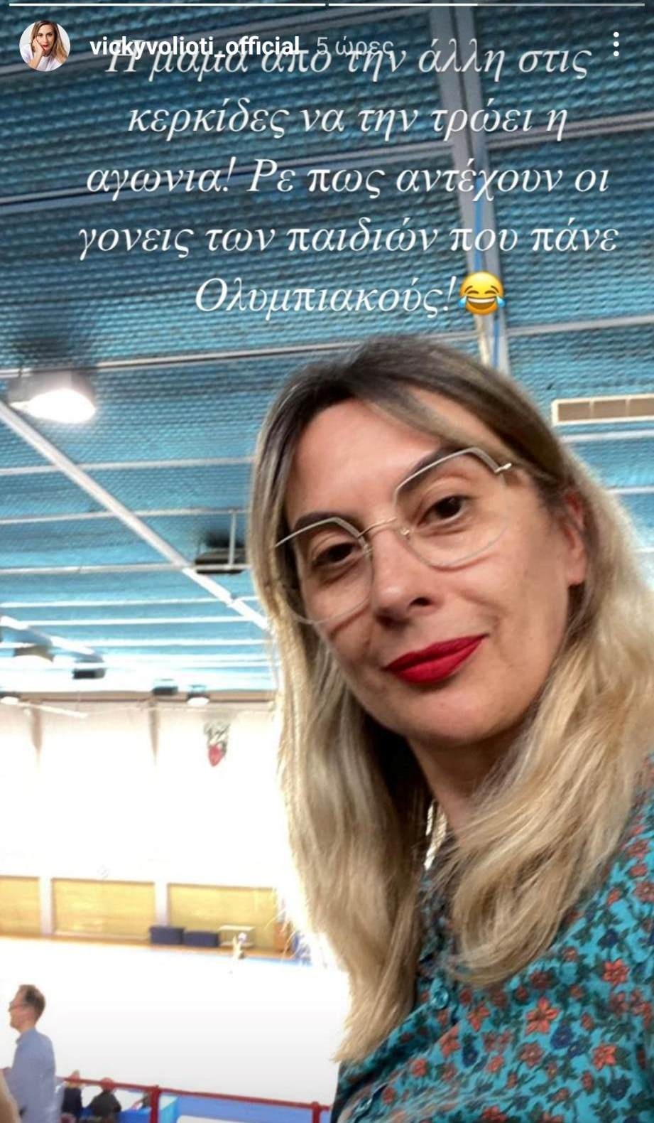 «Η μαμά από την άλλη στις κερκίδες να την τρώει η αγωνία. Ρε πώς αντέχουν οι γονείς των παιδιών που πάνε Ολυμπιακούς;», έγραψε φωτογραφίζοντας τον εαυτό της.