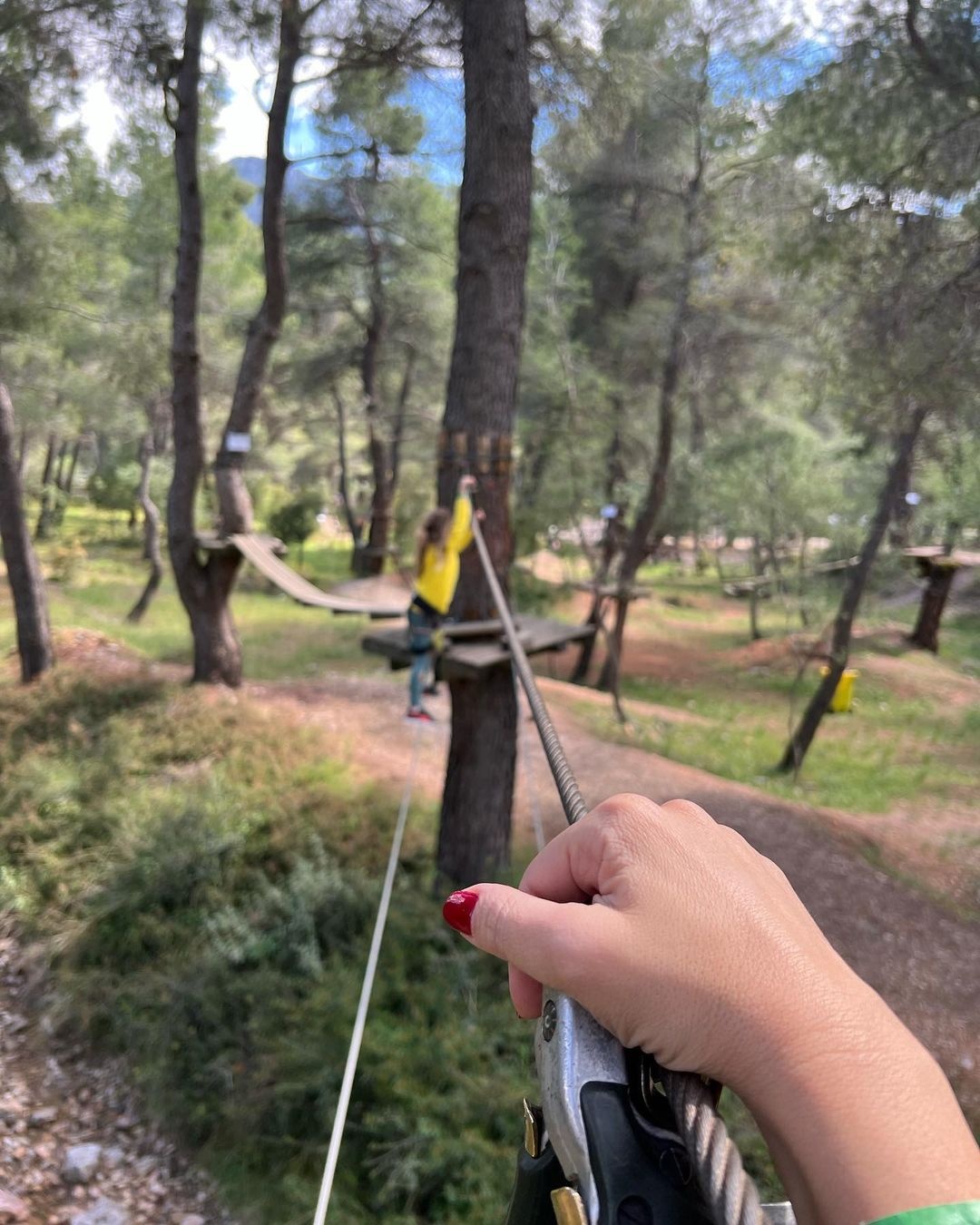 Και να ‘μαι τώρα στο δάσος, σκαρφαλωμένη σε σχοινιά και (ασταθέστατες) σκάλες και γέφυρες, επειδή οι κόρες ζήτησαν να ανέβω κι εγώ διότι «έλα, μαμά, θα είναι ωραία».