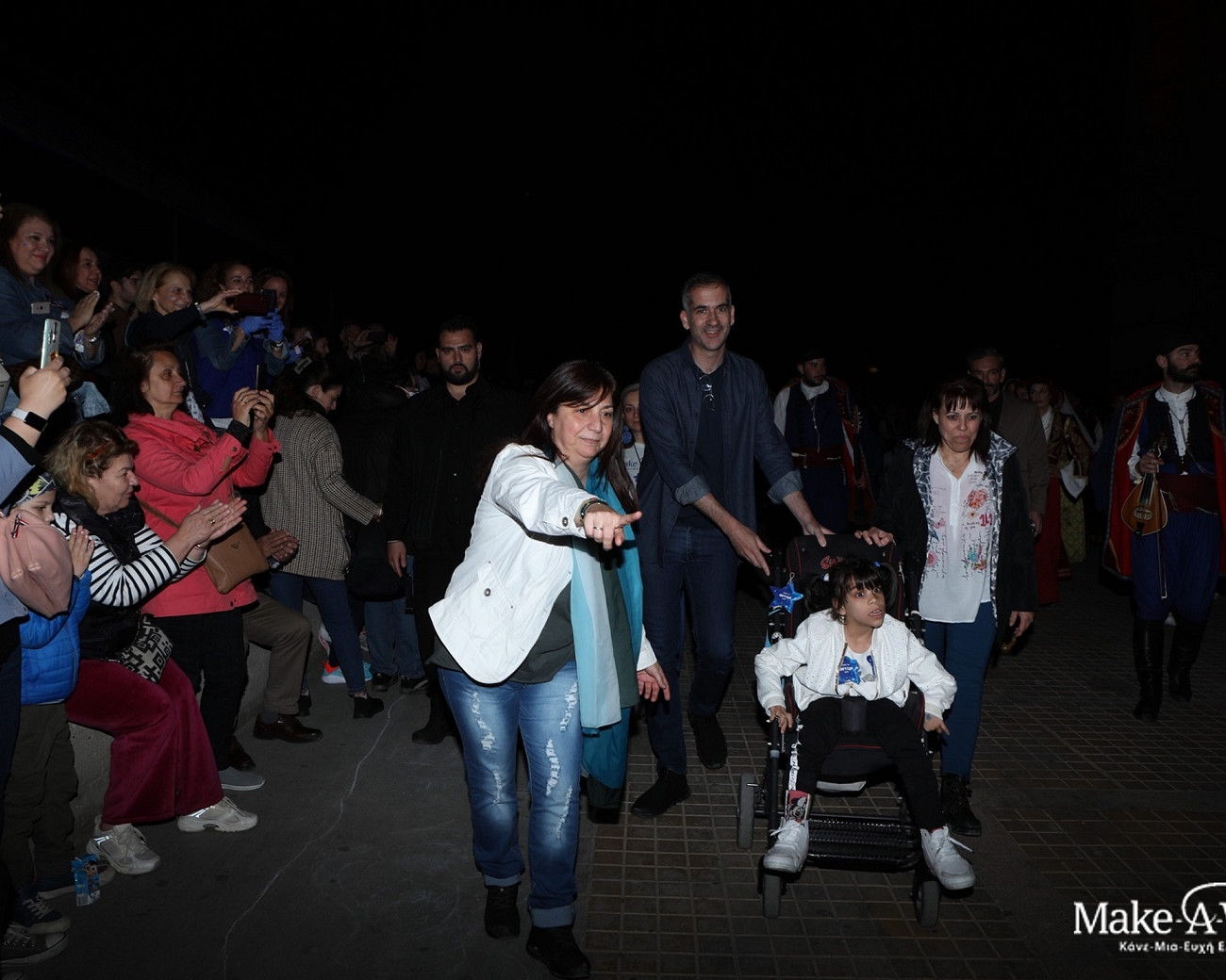 Ο ετήσιος περίπατος ξεκίνησε από τη Δ. Αρεοπαγίτου, με την αγαπημένη μας Πρέσβειρα, Φαίη Σκορδά, να είναι όπως πάντα κοντά μας. Έχοντας ανάμεσα στους συμμετέχοντες πολλά παιδιά ευχής με τις οικογένειές τους και την ορχήστρα Drumsticks των μαθητών Δημοτικού του Κολλεγίου Αθηνών, στη συμβολή των οδών Πειραιώς και Ερμού, οι Βρακοφόροι υποδέχτηκαν σύσσωμοι τη Δέσποινα με μαντινάδες ειδικά γραμμένες για εκείνη υπό τους ήχους της λύρας και του λαούτου. Η ενέργειά τους συνεπήρε το κοινό και όλοι μαζί κίνησαν συγκινημένοι για τον τελικό προορισμό, την Τεχνόπολη Δήμου Αθηναίων. Στο ολόφωτο μπλε προαύλιο, υποδέχτηκαν τον περίπατο ο Δήμαρχος Αθηναίων, Κώστας Μπακογιάννης, και ο Πρόεδρος της Τεχνόπολης, Κωνσταντίνος Δέδες.