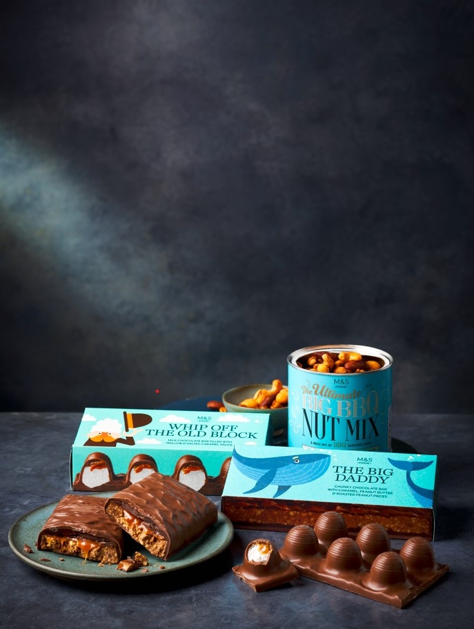 Συμπληρώστε την γιορτινή ατμόσφαιρα με τις αγαπημένες λιχουδιές των μπαμπάδων! Τα Marks & Spencer συνιστούν για την Ημέρα του Πατέρα σοκολατένιες μπάρες και γλυκίσματα με καραμέλα, φυστικοβούτυρο και marshmallow, ποικιλία αλμυρών chips, καθώς και προτάσεις σε δροσιστικά αναψυκτικά και γευστικά παγωτά!