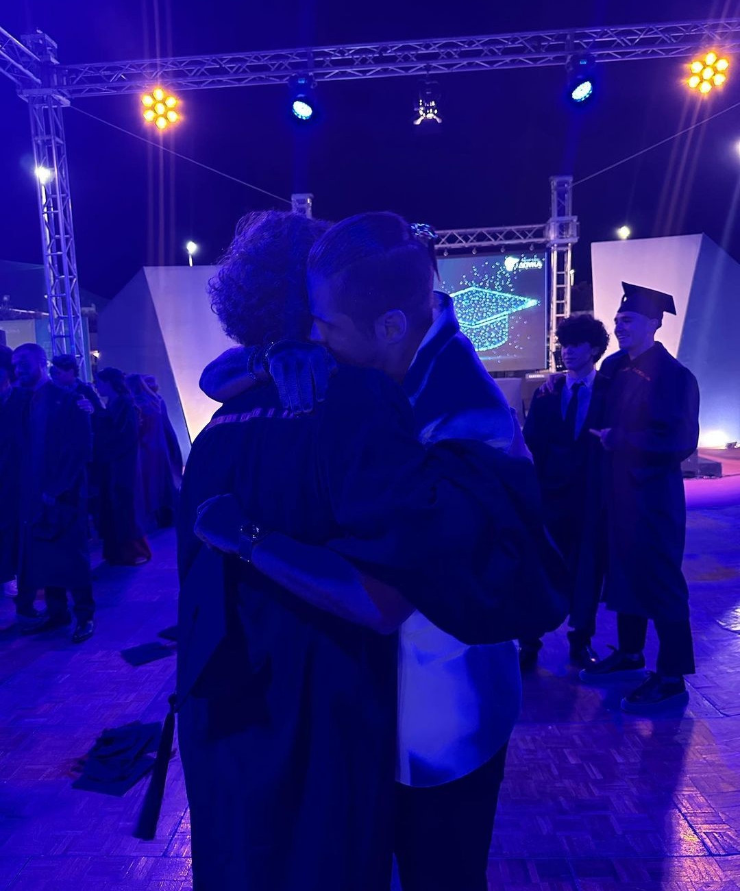 Ο τραγουδιστής με τη σύζυγό του δεν θα μπορούσαν να λείπουν από αυτή την τόσο ξεχωριστή βραδιά του παιδιού τους.