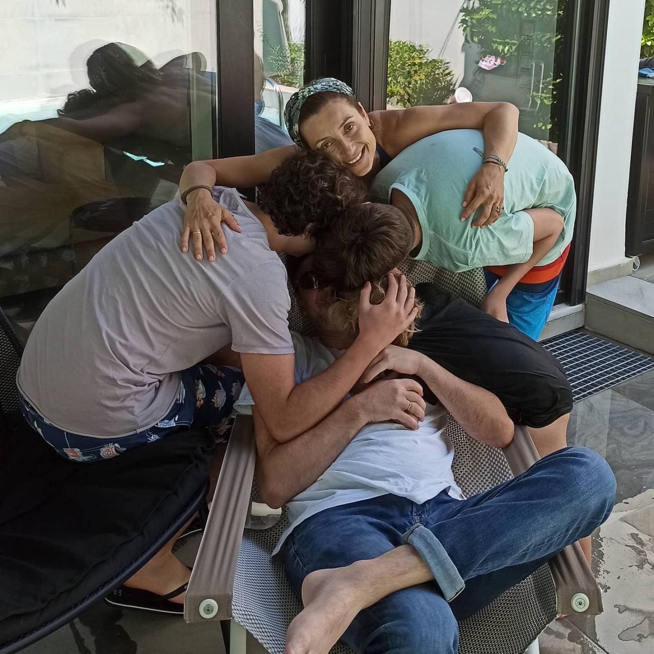 Δημοσίευσε φωτογραφία που δείχνει την όμορφη οικογένειά τους, συνοδεύοντάς της με το εξής σχόλιο: «Χρόνια πολλά πολλά στον ήρωα της ζωής μας !!!Για σένα αγάπη μου μόνο υγεία εύχομαι ….Και να συνεχίσεις να μας χωράς όλους έτσι μέσα στην αγκαλιά σου !!!Μέχρι τον ουρανό τη θάλασσα και πάλι πίσω !!!!!!».