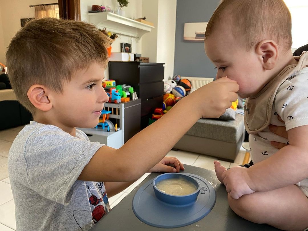 Ο Θοδωρής Junior ταΐζει τον μικρό του αδερφό.