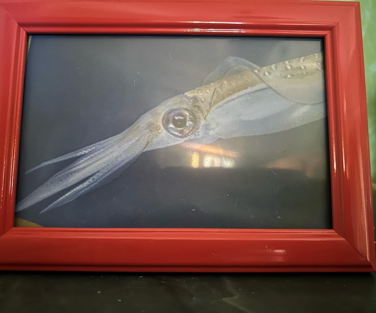 Εγώ έχω το κάδρο με τη φωτογραφία από ένα καλαμάρι το οποίο ο γιος μας είχε την επιθυμία να το τοποθετήσω εκεί και να το βλέπω , ενώ η Ιζόλδη τσεκάρει κάθε μέρα αν έχει παραμείνει στη θέση του.