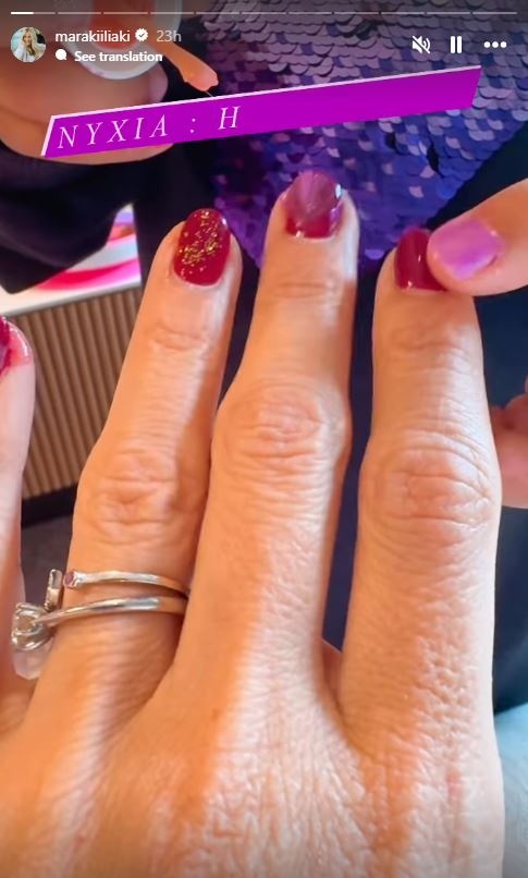 Χθες, η Μαρία Ηλιάκη αφέθηκε για ακόμα μια φορά στα …χεράκια της κόρης της η οποία έκρινε ότι η μπορντό απόχρωση στα νύχια της μαμάς της δεν ήταν και η καλύτερη. Επέλεξε λοιπόν ένα άλλο χρώμα.