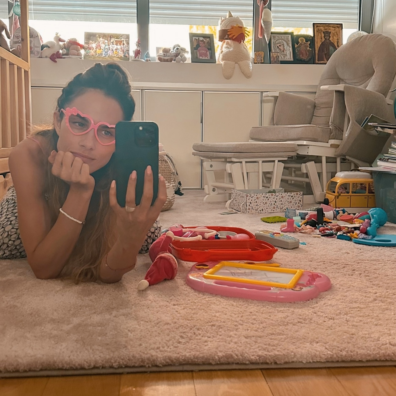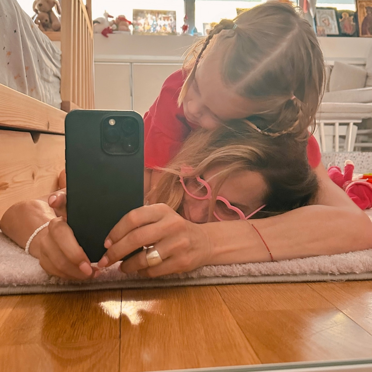 Τις προάλλες θεία και ανιψιά έπαιζαν στο πάτωμα με την ηθοποιό να φορά παιδικά ροζ γυαλιά σε σχήμα καρδιάς.