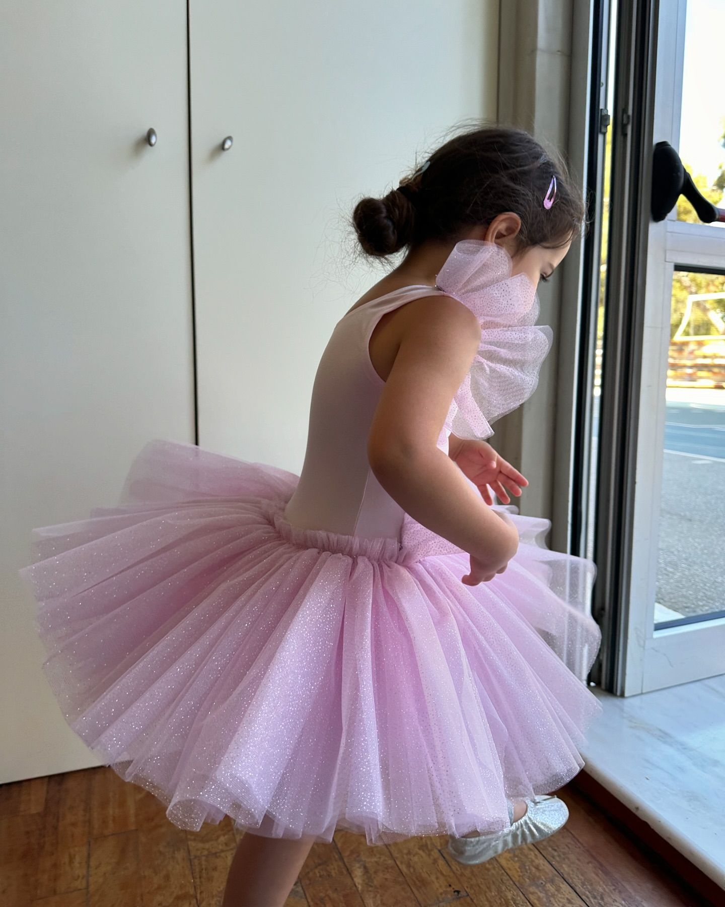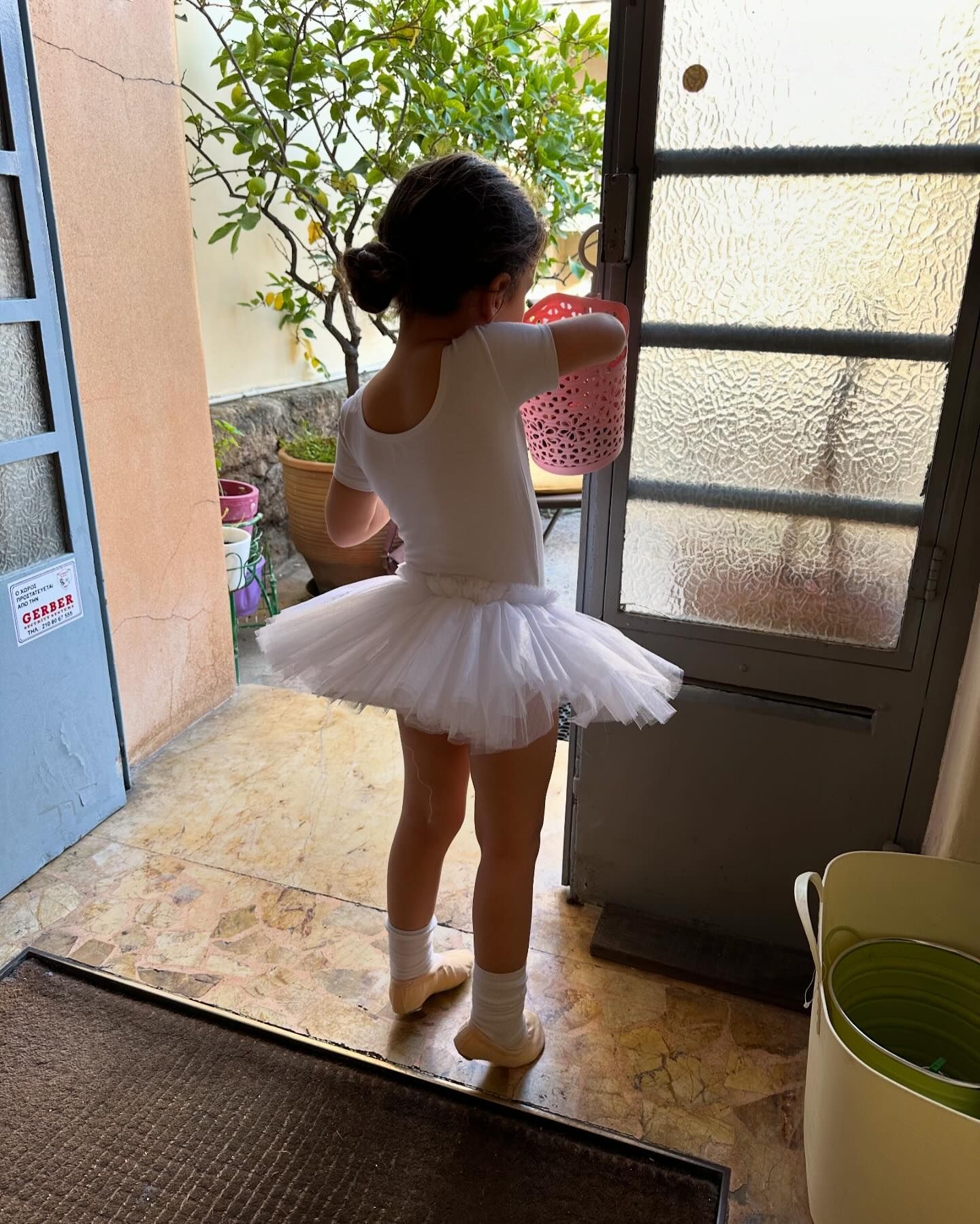 Αυτή τη φορά, η Νικολέττα απαθανάτισε την μικρή Σοφία με ένα ροζ φόρεμα με σχέδια με τούλινο τελείωμα και ροζ crocs.
