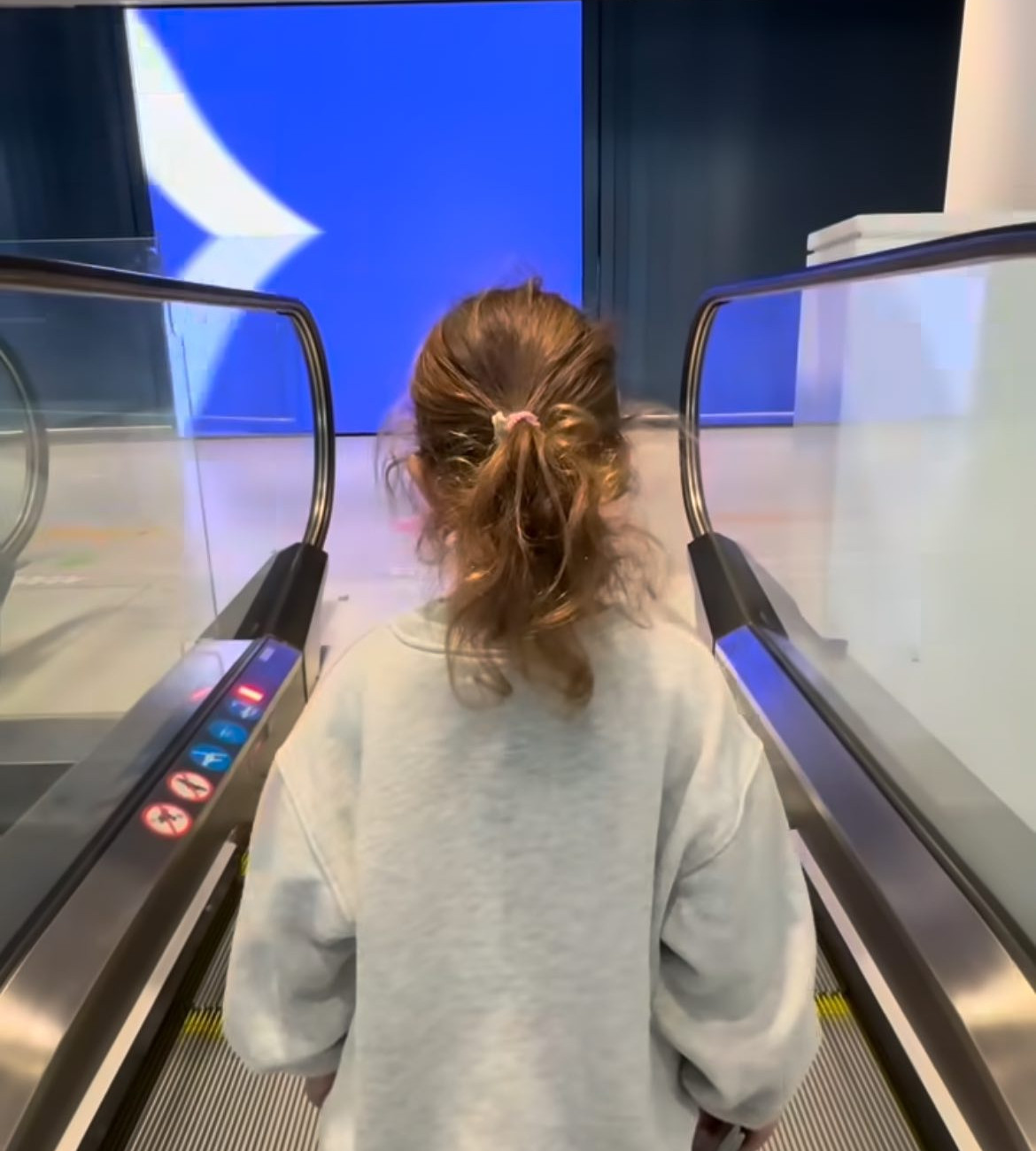 «Δεν έχω καλύτερο», έγραψε στο πρώτο βίντεο όπου η μικρή Κύνθια χοροπηδώντας ανεβαίνει τις κυλιόμενες σκάλες.
