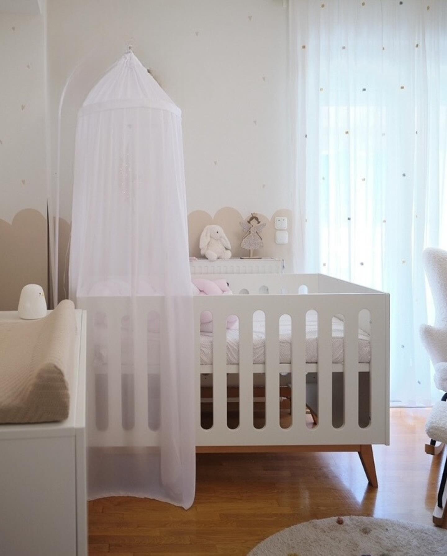 Μάλιστα η Δανάη Μιχαλάκη ανέβασε αρκετές φωτογραφίες στον προσωπικό της λογαριασμό στο Instagram δείχνοντας την κούνια, την διακόσμηση και τις αποχρώσεις που επέλεξε.