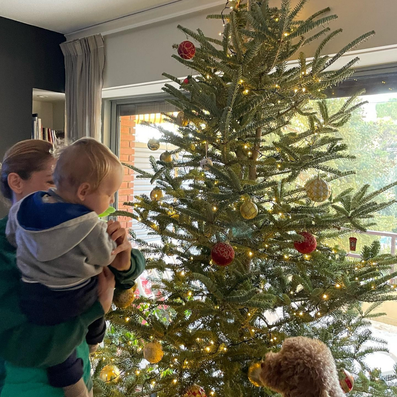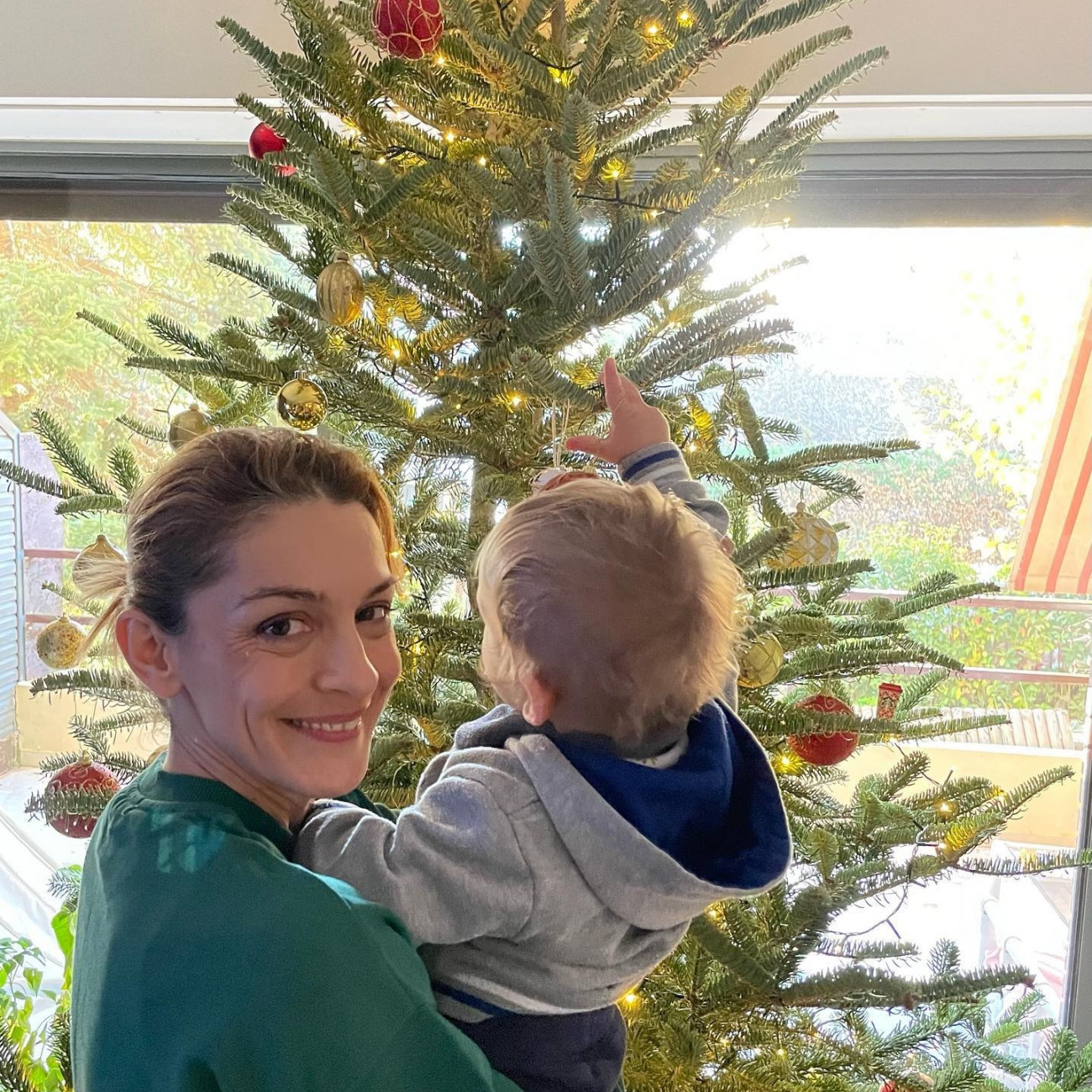 Η Γιούλικα Σκαφιδά επέλεξε φυσικό δέντρο για τα Χριστούγεννα. Στόλισε λοιπόν για τις γιορτές και φωτογραφήθηκε μαζί με τον γιο της μπροστά από το φωτισμένο δέντρο.
