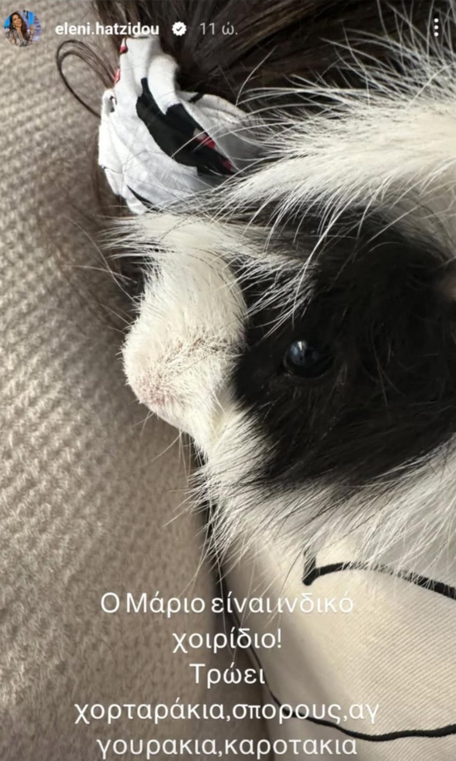 «Ο Μάριο είναι ινδικό χοιρίδιο! Τρώει χορταράκια, σπόρους, αγγουράκια και καροτάκια» έγραψε χαρακτηριστικά η παρουσιάστρια - τραγουδίστρια.