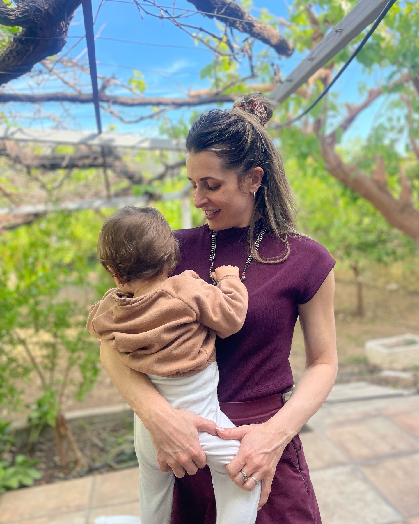 Ξεχωριστή όμως ήταν και η παρουσία του μικρού γιου της ηθοποιού, ο οποίος εξερευνούσε με ενθουσιασμό την αυλή του σπιτιού. Με τη μαμά του πάντα κοντά, απολάμβανε τον ήλιο και το παιχνίδι στη φύση, κάνοντας τα πρώτα του βήματα στις πασχαλινές παραδόσεις.