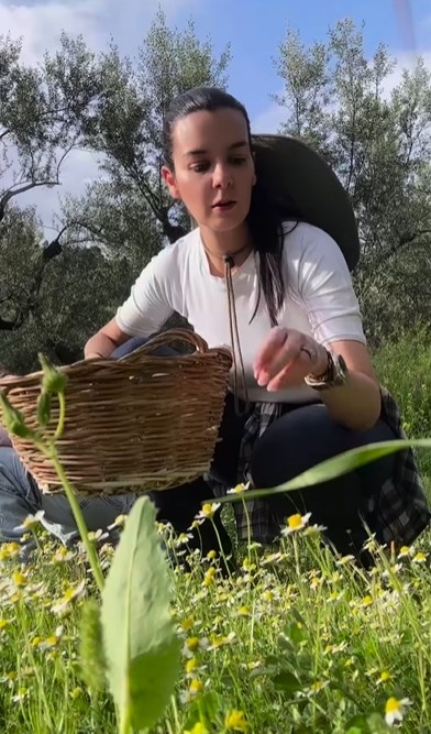 Ένα από τα highlights ήταν το μάζεμα του χαμομηλιού. Η παρουσιάστρια, κρατώντας στο χέρι το πανέρι της, μας έδωσε συμβουλές για το σωστό τρόπο συλλογής, ενώ η κόρη της μάζευε με ενθουσιασμό τα μικρά, αρωματικά άνθη.