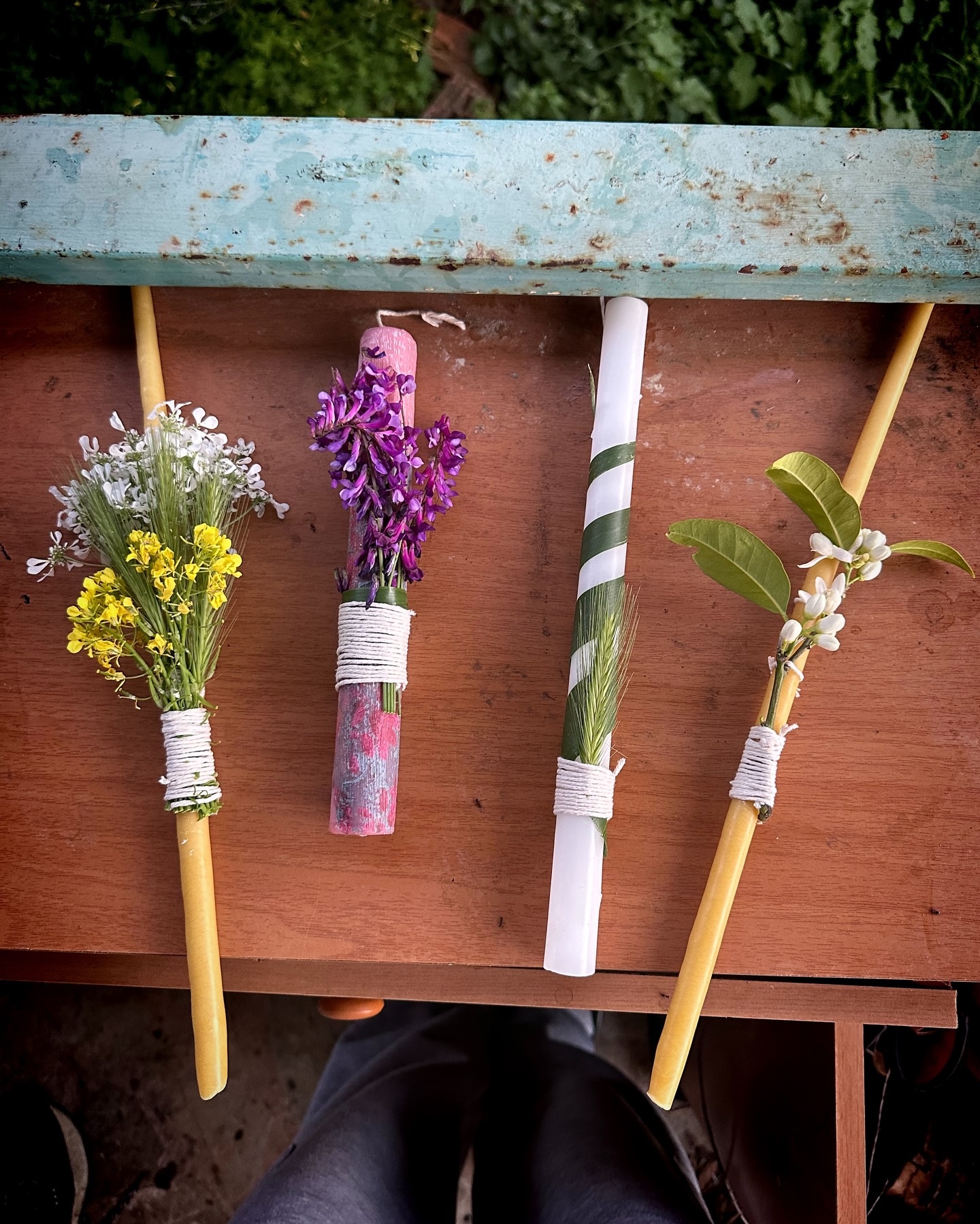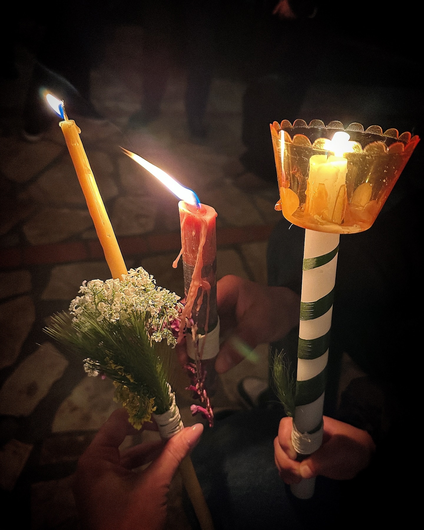Όμορφες ήταν και οι φωτογραφίες από το βράδυ της Ανάστασης, με τις χειροποίητες λαμπάδες που έφτιαξε μαζί με την κόρη της. Λουλούδια μαζεμένα από το ίδιο το χωριό στόλισαν τις λαμπάδες τους, δίνοντας μια προσωπική και συμβολική νότα στην πιο σημαντική νύχτα της Ορθοδοξίας.