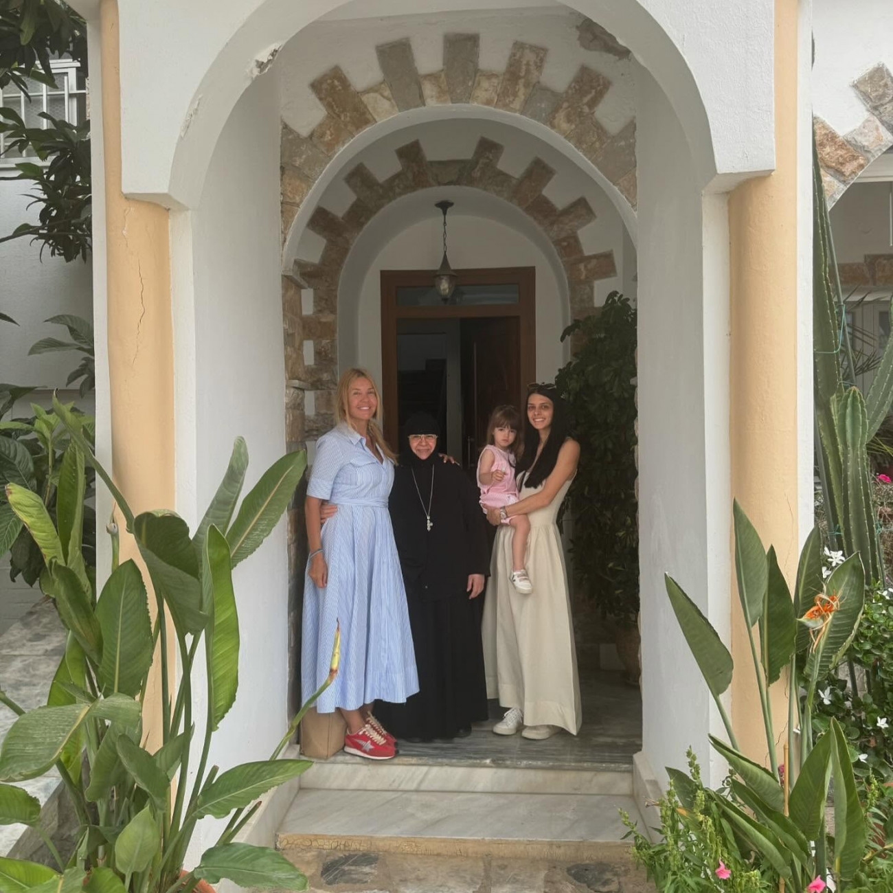 Οι δύο γυναίκες μοιράστηκαν στιγμιότυπα από την επίσκεψή τους στην Ιερά Μονή Ραφαήλ του νησιού, που συγκεντρώνει πιστούς από όλη την Ελλάδα κι όχι μόνο.