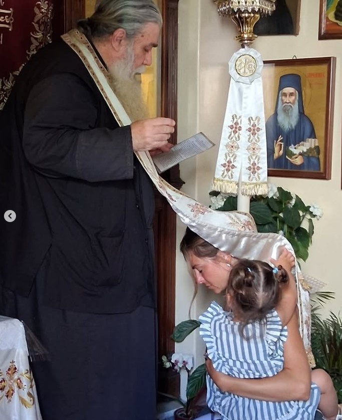 Η στιγμή έγινε ακόμη πιο ξεχωριστή όταν ο ιερέας του μοναστηριού τέλεσε ειδική προσευχή για τη μνήμη της μητέρας της, ενώ ευλόγησε τόσο την ίδια όσο και τη μικρή Αθηνά. Ένα τελετουργικό γεμάτο αγάπη, τιμή και πίστη, που η Μαρία χαρακτήρισε «ξεχωριστό», καθώς είναι στιγμές που μοιράζεται με την κόρη της.