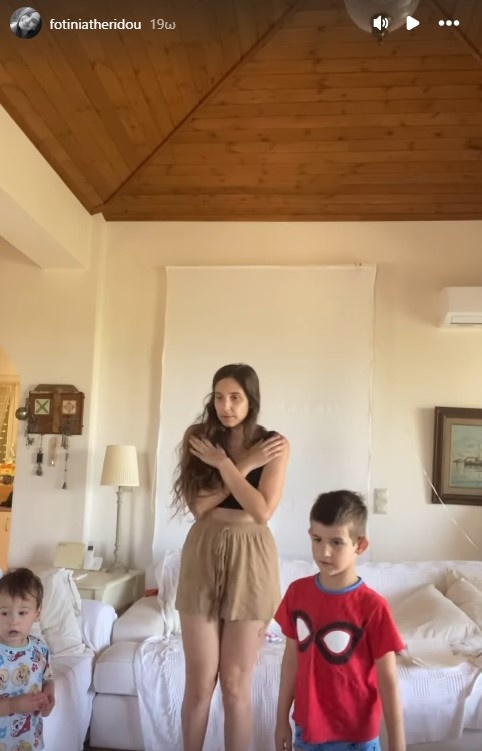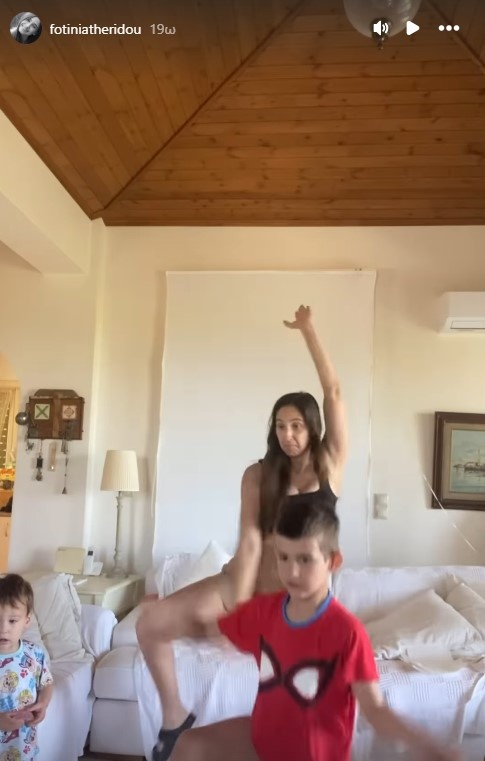 Σε ένα από τα stories που δημοσίευσε, βλέπουμε τη Φωτεινή και τον μεγάλο της γιο να χορεύουν στο σαλόνι του σπιτιού τους στην Αίγινα. Ο μικρός, με το χαρακτηριστικό μπλουζάκι του Spider-Man, χορεύει γεμάτος ενθουσιασμό μαζί με τη μαμά του. Η εικόνα είναι γεμάτη ζωντάνια και μας θυμίζει πως, με απλές κινήσεις και λίγη φαντασία, μπορούμε να δημιουργήσουμε μαγικές στιγμές με τα παιδιά μας.