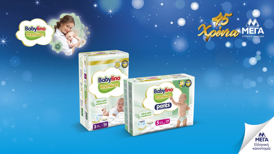 Πρόσφατα λάνσαρε τις νέες βρεφικές πάνες Babylino Premium. Μια βρεφική σειρά γεμάτη φροντίδα, ασφαλή προστασία και απίστευτα απαλά υλικά, σχεδιασμένη με βάση έρευνες καταναλωτών για το πώς θα ήθελαν την ιδανική πάνα. Επιμελώς μελετημένη, με στόχο τη μέγιστη δυνατή ασφάλεια για το βρεφικό δέρμα και ελεγμένη σε διεθνώς αναγνωρισμένα, αυστηρά δερματολογικά εργαστήρια του εξωτερικού. Το αποτέλεσμα; Μια πρωτοποριακή πάνα, Premium σε όλα της και με προηγμένη τεχνολογία 3D Protection: Super λεπτή, για να προσφέρει Premium εφαρμογή, επιτρέποντας μοναδική άνεση κινήσεων. Premium απορροφητική, με τεχνολογία Night Use tested. Πάνω από όλα, Premium απαλή, με ασύγκριτα απαλά καλύμματα...