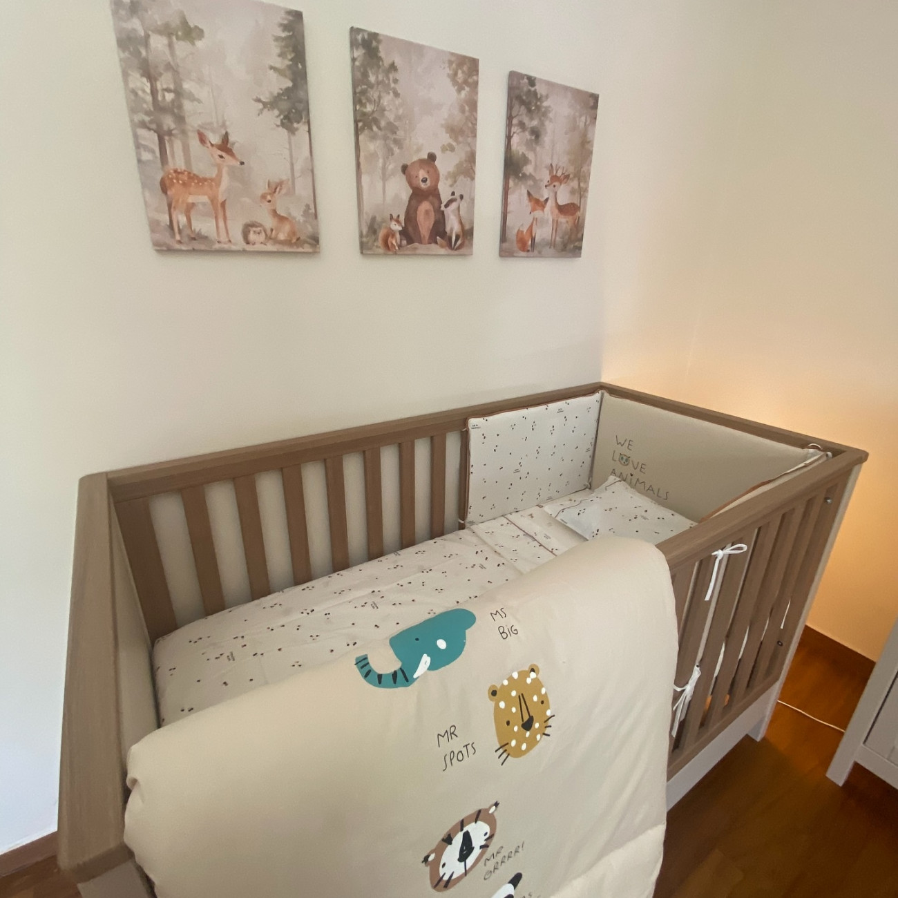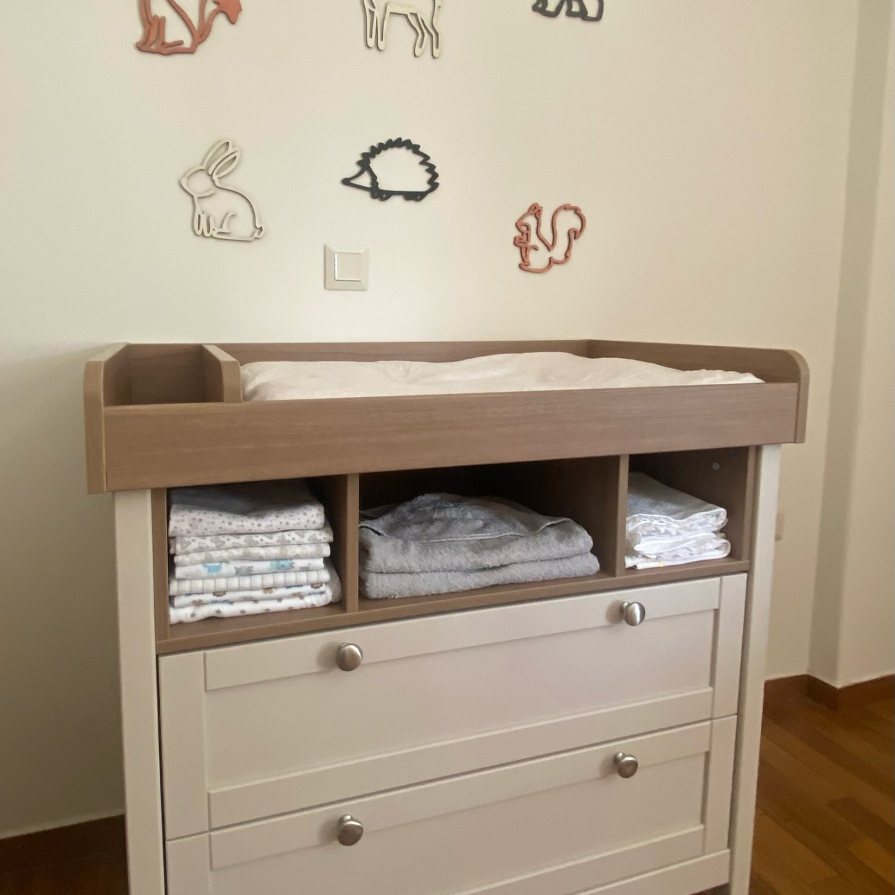 Η αισθητική του δωματίου είναι μια ζεστή αγκαλιά. Κυριαρχούν τα γήινα χρώματα, με απαλό λευκό και ζεστό καφέ. Το θέμα που επιλέχθηκε είναι εμπνευσμένο από τη φύση και τα ζώα του δάσους. Χαριτωμένες αρκούδες, αλεπούδες, σκαντζόχοιροι, σκίουροι, ελάφια και κουνελάκια κοσμούν το χώρο.