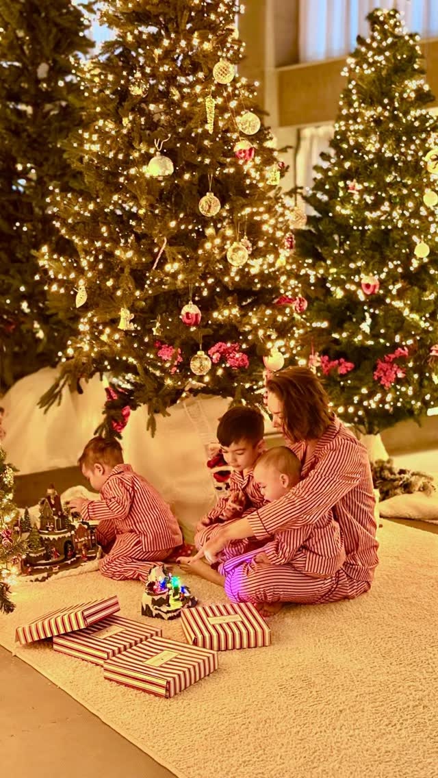 «Όλη μου η καρδιά, σε 3 πιτζαμάκια 🤍🎄🥰», έγραψε κάτω από το βίντεο που δείχνει στιγμιότυπα της περήφανης μαμάς με τους τρεις γιους της. Στο σαλόνι της ξεχωρίζουν τρία χριστουγεννιάτικα δέντρα στολισμένα με πολλά φωτάκια και μερικά στολίδια, ενώ οι τρεις τους φορούν ίδιες πιτζάμες και παίζουν με τα παιχνίδια που βρίσκονται από κάτω, δημιουργώντας σκηνές που μοιάζουν βγαλμένες από χριστουγεννιάτικο παραμύθι.