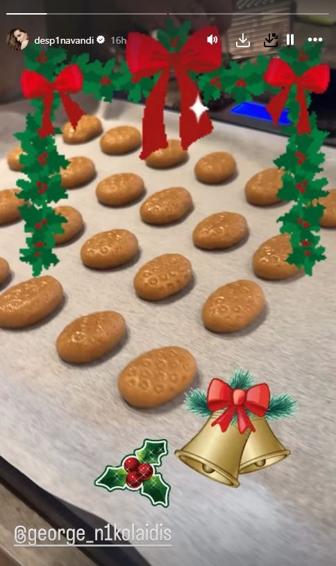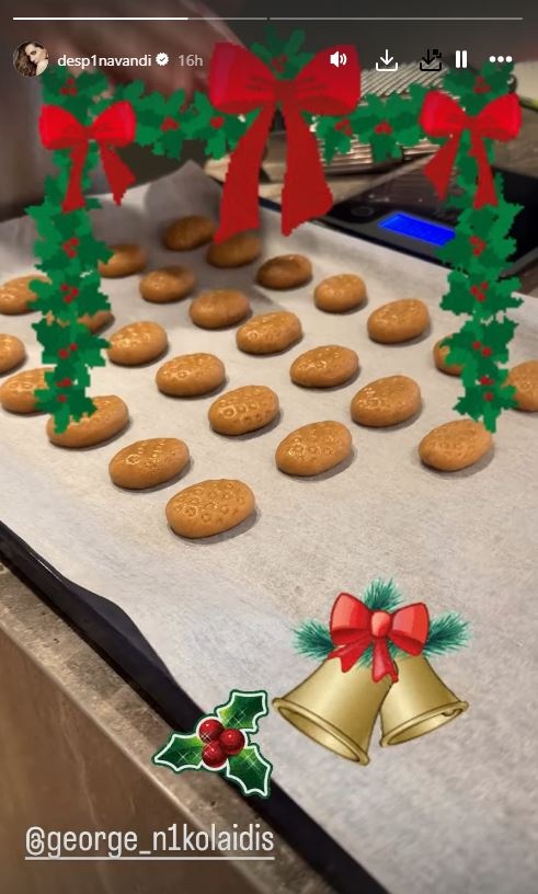 Χθες, λοιπόν ανέβασε insta stories δείχνοντας τον γιο της να πλάθει μελομακάρονα και την ίδια να λέει: « Γιώργο, έχουμε καταστραφεί από τα μελομακάρονά σου», αφήνοντας να εννοηθεί ότι είναι τόσο νόστιμα που δεν μπορεί να αντισταθεί.