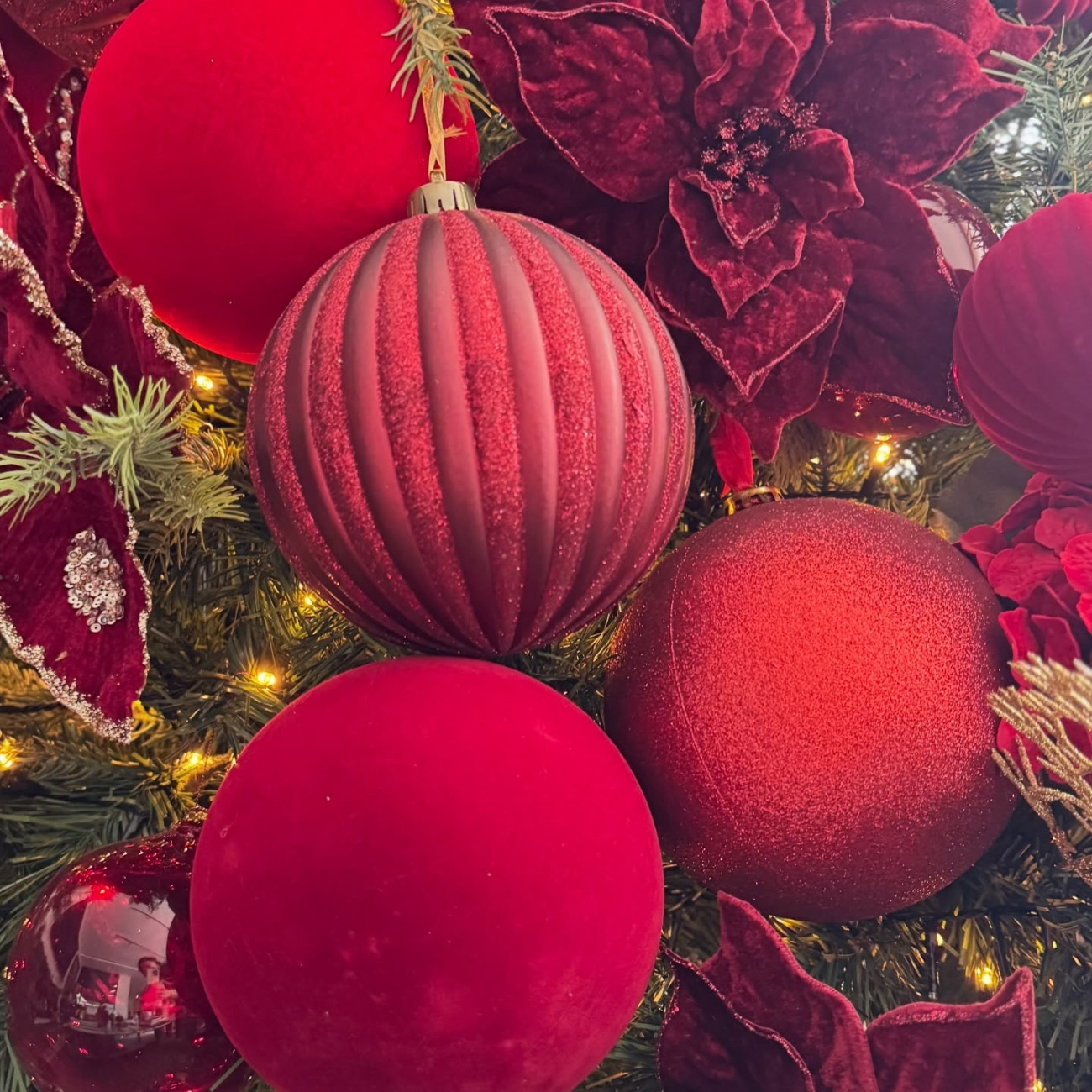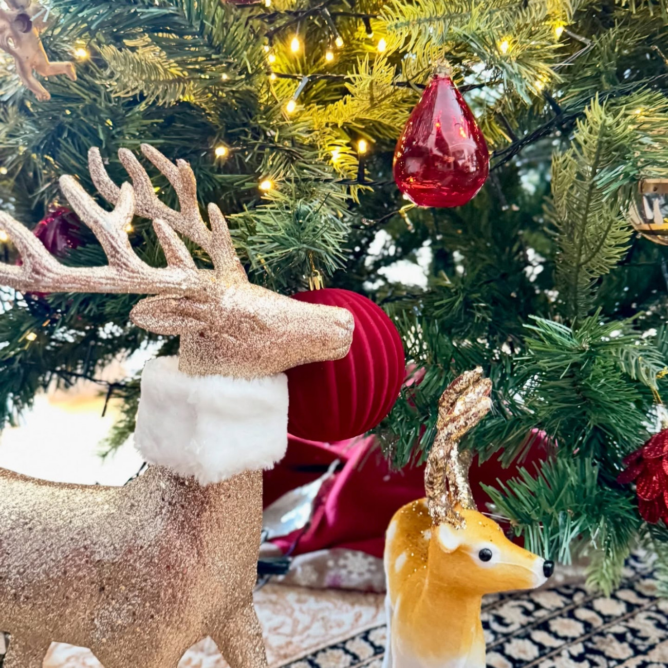 Το χριστουγεννιάτικο δέντρο της Σίσσυς Φειδά είναι από μόνο του πρωταγωνιστής. Πλούσια στολισμένο, με βαθύ κόκκινο, χρυσές λεπτομέρειες και φωτάκια που λούζουν τον χώρο με απαλό φως, δημιουργεί μια αίσθηση θαλπωρής που σε κάνει να θες να καθίσεις κάτω από τα κλαδιά του και να μείνεις εκεί. Τα στολίδια, προσεκτικά επιλεγμένα, αποδεικνύουν για ακόμη μια φορά πως όταν το προσωπικό γούστο συναντά το ταλέντο, το αποτέλεσμα είναι μαγικό.