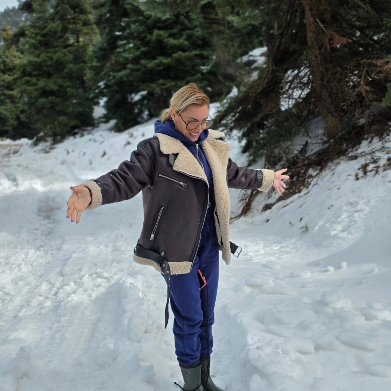 Με τα παιδιά τους ντυμένα ζεστά και χαμογελαστά, η οικογένεια βγήκε στην φύση για να απολαύσει τις λευκές πλαγιές και τον καθαρό αέρα. Οι φωτογραφίες που μοιράστηκαν στα social media μαρτυρούν την απλότητα και την αυθεντικότητα της στιγμής: οι μικρές και η Βασιλική παίζουν με το χιόνι και φωνάζουν από χαρά, ενώ ο Λευτέρης συμμετέχει ενεργά σε κάθε παιχνίδι, δείχνοντας ότι η οικογένεια αποτελεί προτεραιότητα πέρα από κάθε διάκριση ή επαγγελματική υποχρέωση.