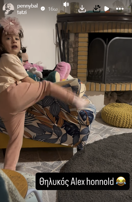 Στο πρόσφατο story που μοιράστηκε, βλέπουμε τη μικρή της κόρη να σκαρφαλώνει στην πολυθρόνα φορώντας στέμμα και κρατώντας ένα γλειφιτζούρι, με εκείνο το πονηρό βλέμμα της επιτυχίας. Η Πέννυ σχολιάζει χιουμοριστικά: «Ο θηλυκός Alex Honnold», και όλες οι μαμάδες χαμογελούν και ταυτίζονται. Γιατί αυτή είναι η παιδική «ταρζανιά» που συμβαίνει τη στιγμή που γυρίζεις την πλάτη σου.