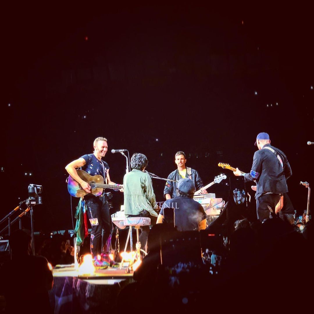 Στιγμιότυπο από τη συναυλία των Coldplay τον περασμένο Απρίλιο στην οποία τραγούδησε και έπαιξε πιάνο και το 12χρονο αγόρι. - Πηγή φωτογραφίας: Instagram / huillo