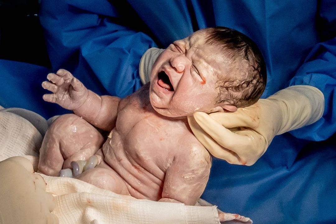 Μωράκι μόλις έχει γεννηθεί και ρίχνει το πρώτο του κλάμα.