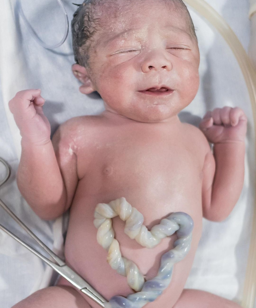 Η φωτογράφος απαθανατίζει το νεογέννητο με τον ομφάλιο λώρο του.