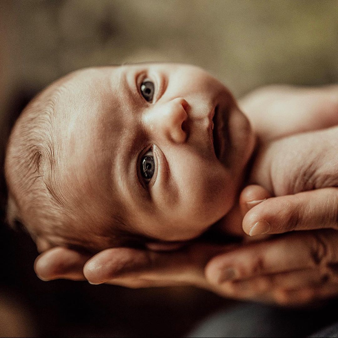 Κοντινές φωτογραφίες νεογέννητων στα χέρια των γονιών τους