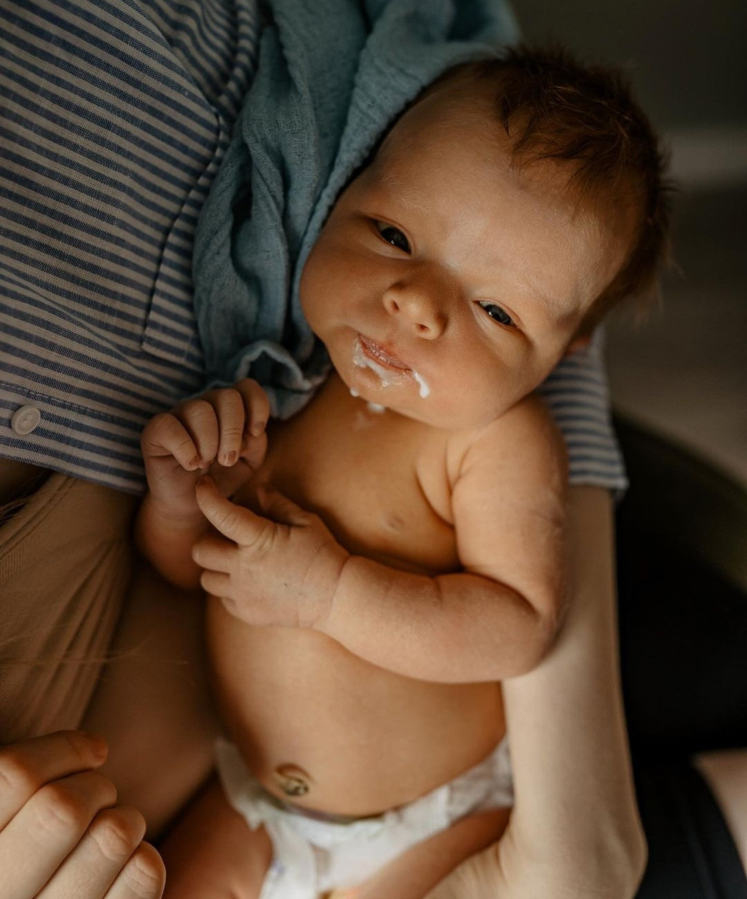 Νεογέννητο με γάλα στο στόμα λίγο μετά τον θηλασμό.